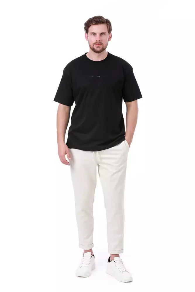 Erkek Oversize Baskılı Siyah T-shirt